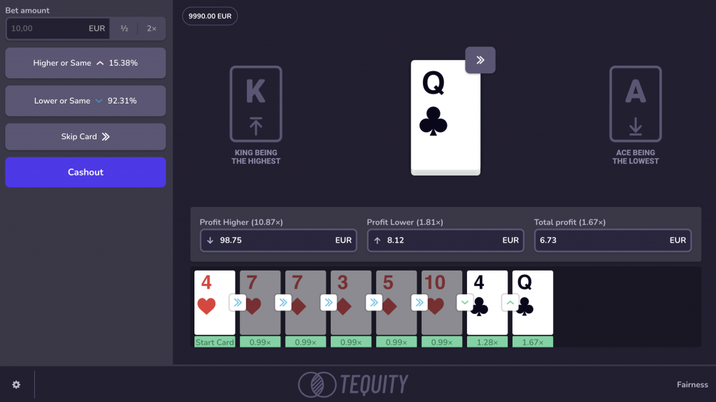 HiLo by Tequity turns a classic guessing game into a smooth, data-driven experience - provably fair, lightning-fast, and optimized for mobile play.
