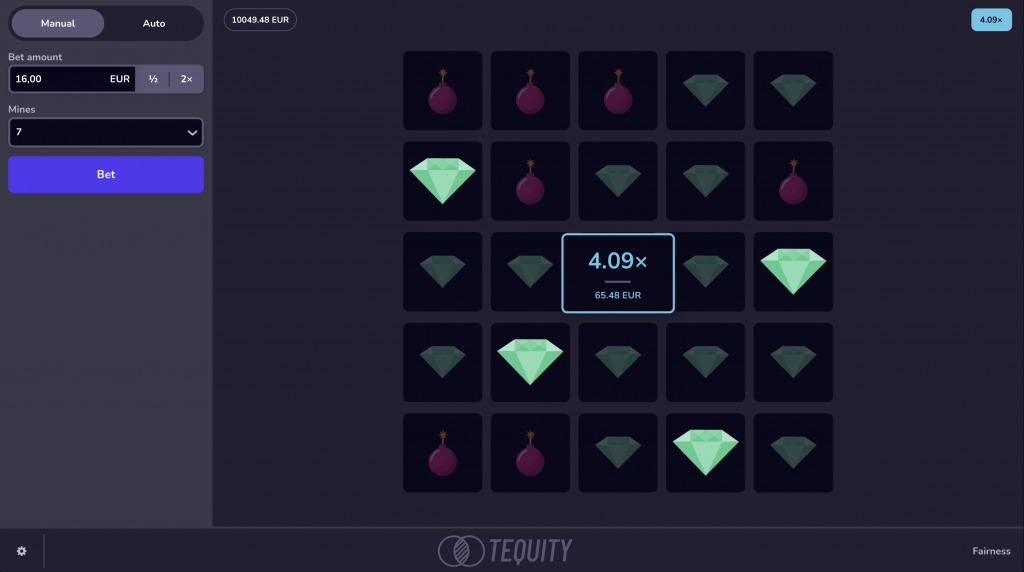Mines by Tequity transforms risk-taking into an elegant challenge - provably fair, visually sharp, and endlessly replayable.